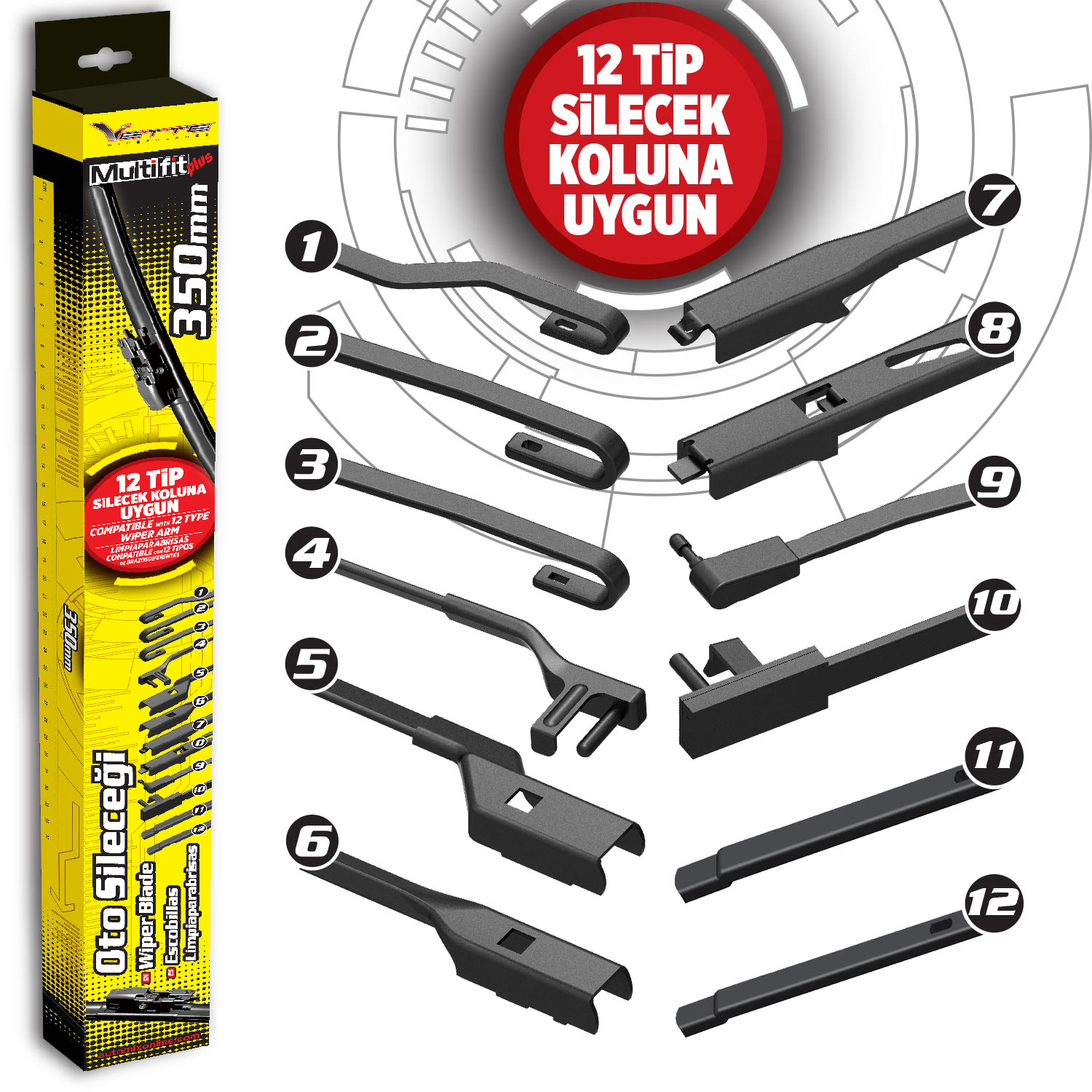 Es compatible con todos los vehículos nacionales y extranjeros. Diseñado para adaptarse a 10 tipos diferentes de brazos. Fabricado con 100% caucho natural. Lo que tienes que hacer es aplicarlo adecuadamente en el brazo del limpiaparabrisas.Los limpiaparabrisas Vette le brindan la misma calidad con la serie Multifitplus.