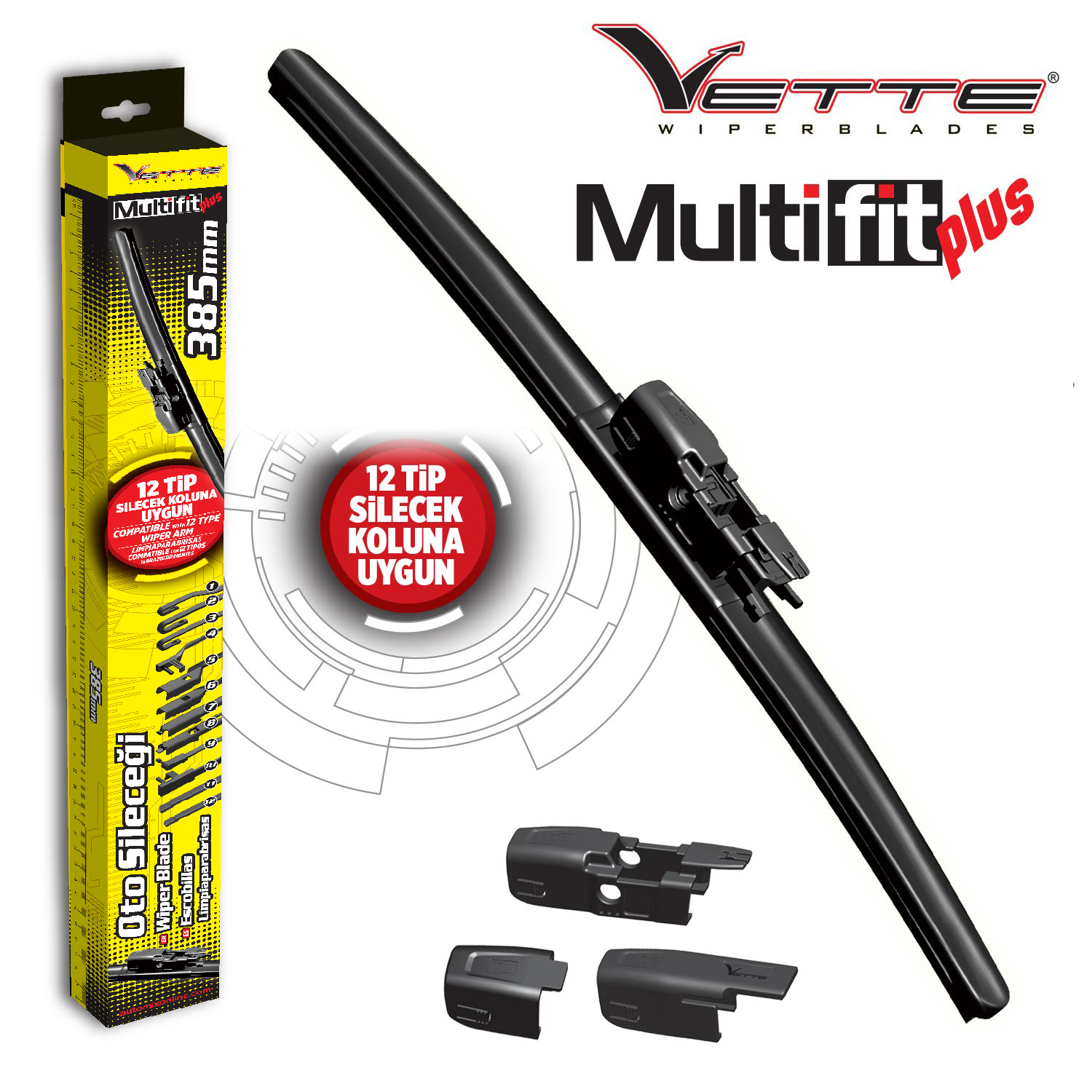 Es compatible con todos los vehículos nacionales y extranjeros. Diseñado para adaptarse a 10 tipos diferentes de brazos. Fabricado con 100% caucho natural. Lo que tienes que hacer es aplicarlo adecuadamente en el brazo del limpiaparabrisas.Los limpiaparabrisas Vette le brindan la misma calidad con la serie Multifitplus.